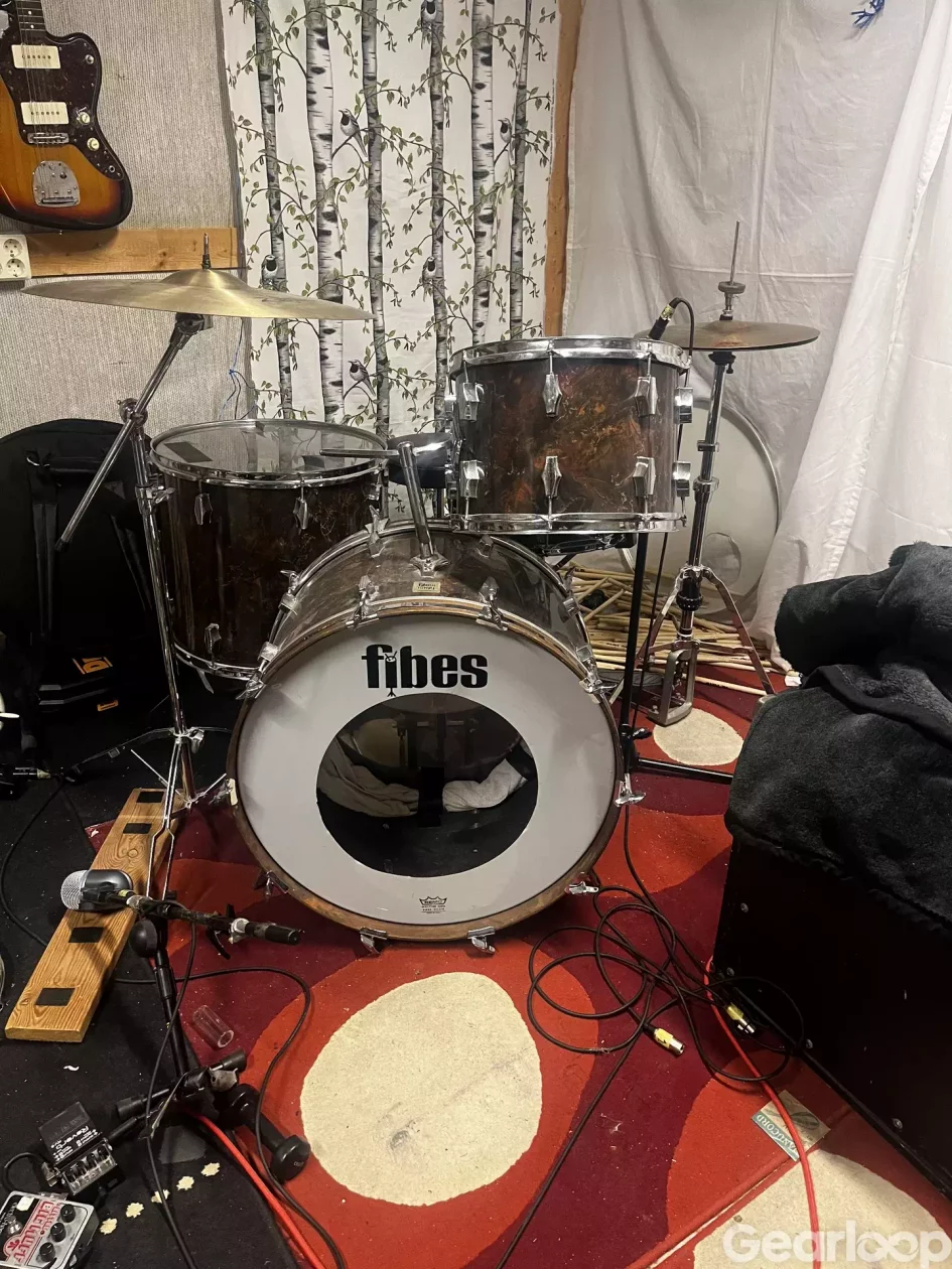 stommarna är i mycket fint skick för sin ålder, trummorna är lättstämda och har en väldig bredd i ljudmöjligheter, från öppet och jazzigt till riktigt fläskig rock. relativt bra skinn sitter på. säljes som shellpack.