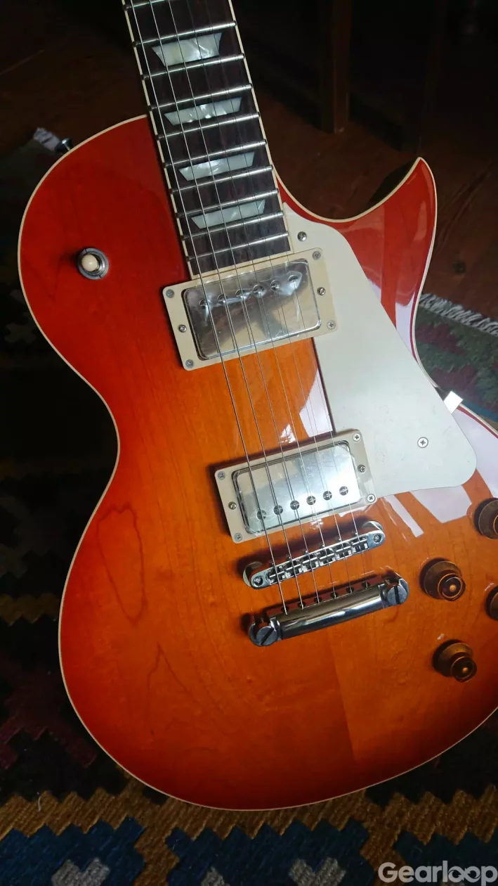 Endast testad nån timme. Beställde två, så den här har bara blivit liggandes. Riktigt bra Les Paul. Tillverkad i Japan. Ca 3,9kg. Faded Cherryburst. Kommer med originalkartong och gigbag. Butikspris 15990kr, så ingen prutmån.