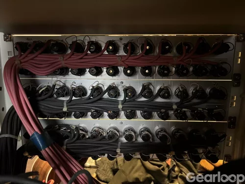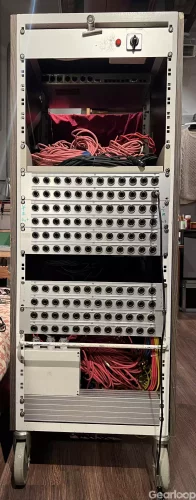 120 pcs, i.e. 60 pcs possible to route studio equipment or something else. At one end Tuchel (5pin) and at the other end xlr (female), with about ten meters between them (with different colored cables). In addition, approx. 40 tuchel (5pin) routing cables, some of which (rca and xlr one end) for other devices. The device trolley is a rough piece of work. inside there is another 8-slot socket for separate devices.