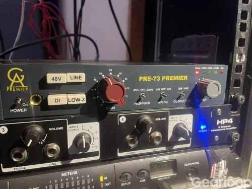 Här har vi en top of the line Neve-klon från Golden age, har personligen testat mot ett par original och för 10% av kostnaden av en AMS 1073 så står denna sig i samma liga. Det är lite sprak på knapparna men det försvinner fort när man använder dom, heck Neve-modulerna gör samma sak so there is that. I övrigt är det lite skav på ovansidan dessvärre. Frågor på det?