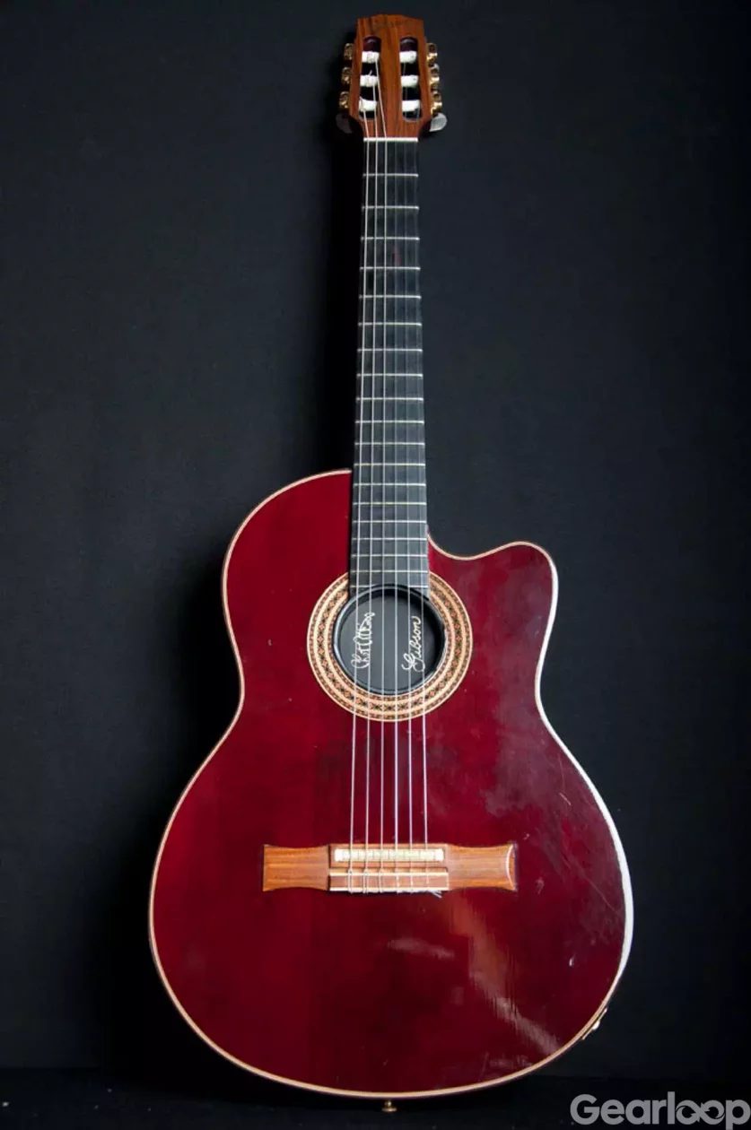 hejsan söker efter en Gibson Chet Atkins CEC nylon vinröd 3 knob, Gibson Chet Atkins studio nylon eller efter en Gibson Chet Atkins fleur de lis