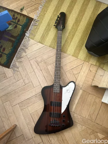 Epiphone Thunderbird. Elektroniken funkar fint. Ett märke i lacken. Behövs göras en setup och nya strängar.