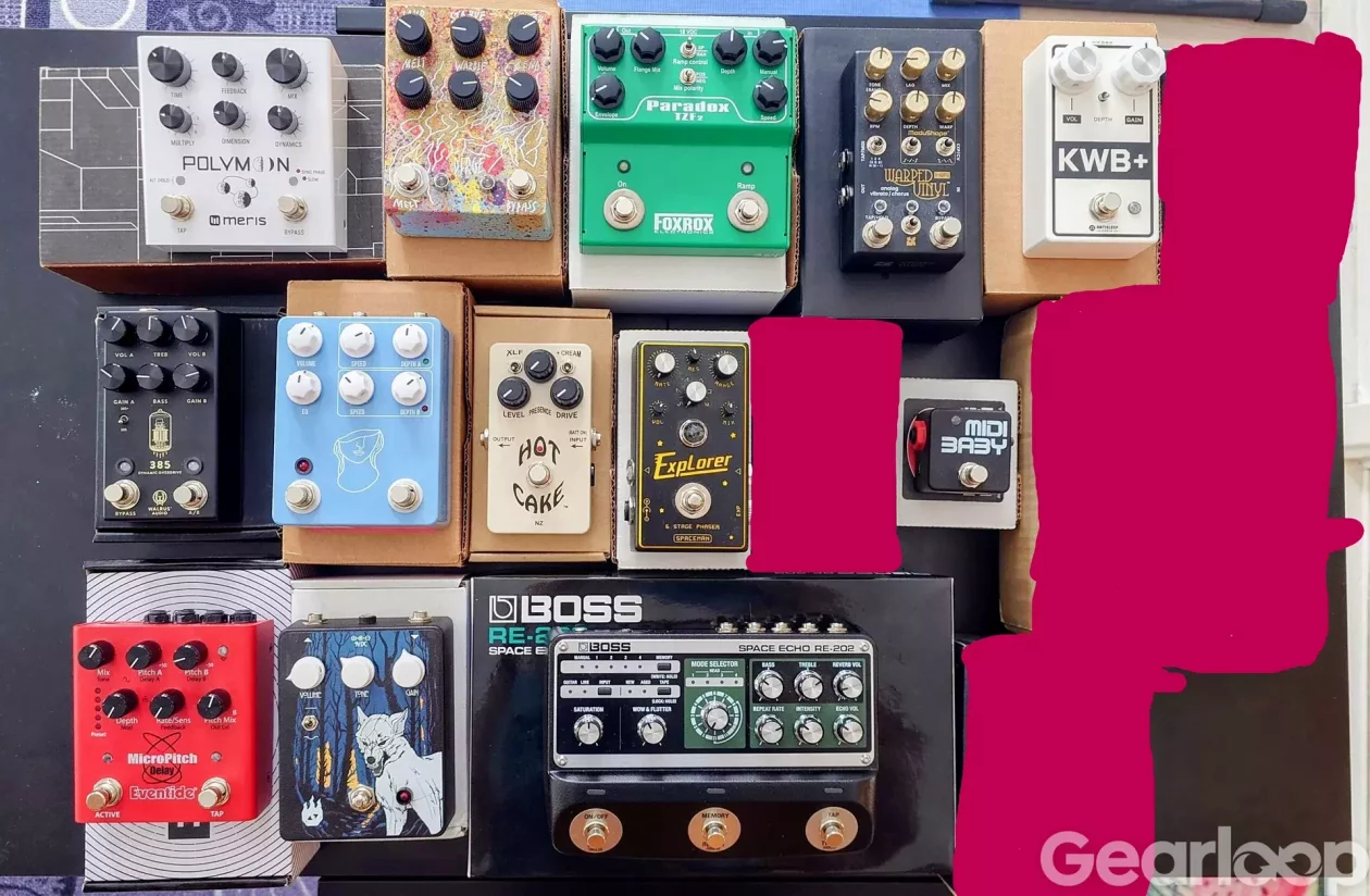 Originallådor till alla pedaler förutom Source Audio Artifakt! Några har velcro på undersidan men alla i mycket bra skick eller nyskick. Finns i Mölndal/Göteborg, men kan skickas.