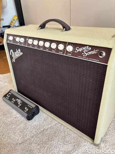 Superfin Fender Super Sonic 22 blonde som låter precis som man vill att en rörförstärkare från Fender ska låta. Genomgången 2025 av Martin på Mojo Relic där bl.a. Reverbet servats + slutstegsrör bytt. Så bara att plug n play för