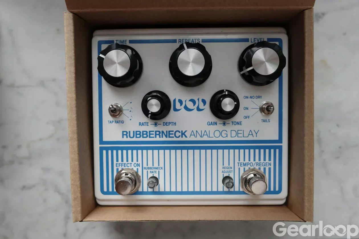 The Rubberneck boasts over a second of warm and musical 100% analog repeats you crave, along with tap-tempo, subdivisions, and tails. Double concentric knobs give you independent control of the Modulation Rate and Depth as well as Gain and Tone of the delay.