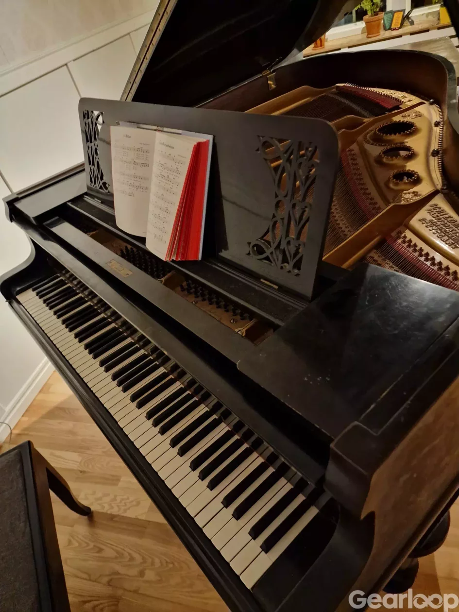 Jag har en Schiedmayer från ca 1930-1940, 165 cm lång, 140 cm bred, ok bruksskick, mörk behaglig klang. Finns och kan provspelas och hämtas i Sävsjö-Småland.