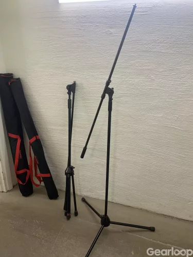 4st stora micstativ. Lämpliga för studiorum, överhäng eller piano. Bra kvalitet, Superlux och K&M. Kommer med fodral.
