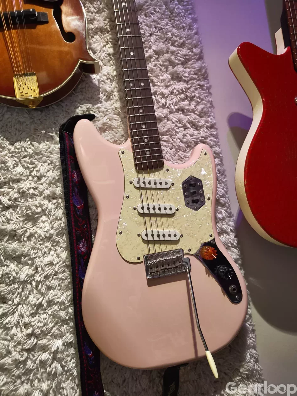 Fint skick i bästa färgen - shell pink. Sitter flats på den nu, lite buzz på en sträng så kanske skulle må bra av en setup. Rattarna utbytta mot lite udda varianter, kanske kan jag hitta originalen i en låda någonstans ¯\_(ツ)_/¯