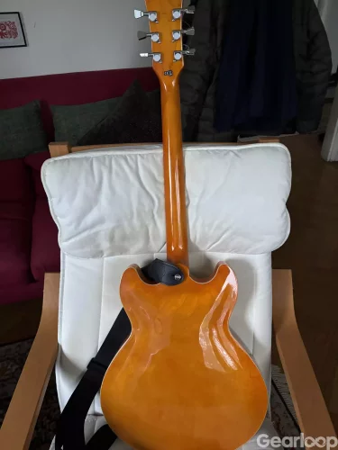 335 modell från numera klassiska Harley Benton med otroligt vacker aaa lönntopp. Ett väldigt fint exemplar.