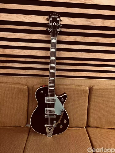 Säljer en Gretsch Duo Jet 6128. Enligt serienumret verkar den vara från 1997 och har horse shoe inlägget på huvudet.