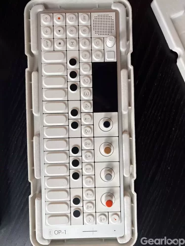 En OP-1 Field, lite över ett år gammal, använd flitigt i hemmet men inte mer än så. Jag går nu all Logic och lämnar min sista hårdvara bakom mig.