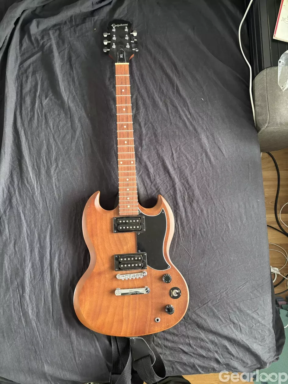 Epiphone SG Special VE Walnut for sale. beautiful Mohaganey wood. has no strings. it comes with guitar strap. had some buzz but was repaired by thomann. can exchange for a bass overdrive. sending is not an option. must come and pick it up