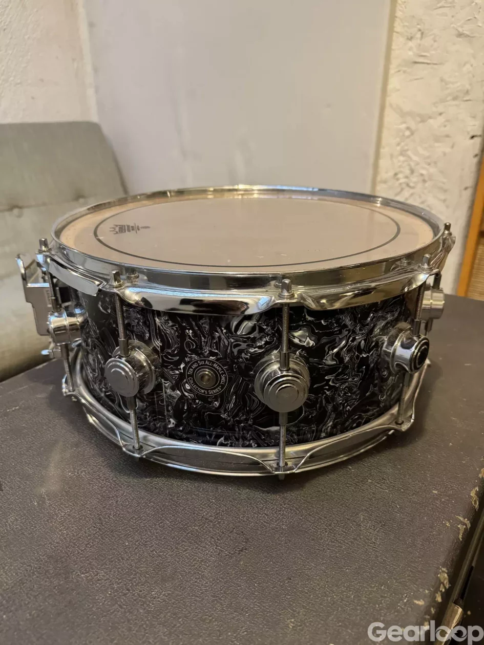 DW Collector Series Ten and Six All Maple Shell 14” virveltrumma i fint skick säljes. Djup 6”. Finishen tror jag heter Abalone. Fick med vid köp av ett trumset för många år sedan och har endast haft med som backup-virvel live men aldrig använt själv. Skulle tro att den köptes ny för cirka 25 år sen. Skickar med ett case på köpet.