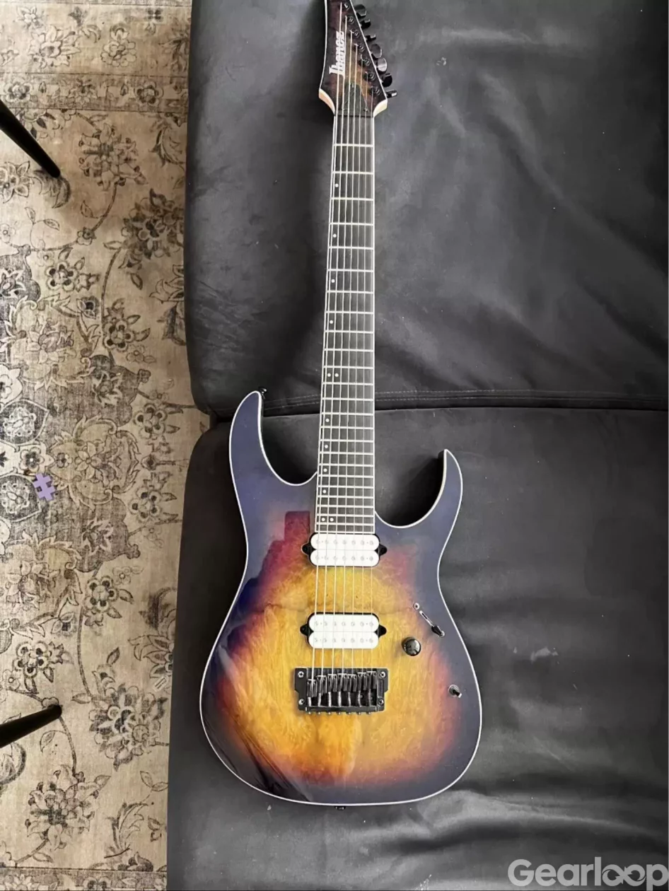 Grym 7-strängad gitarr från Ibanez. Ganska heta Dimarzio micar som är förvånansvärt allsidiga.