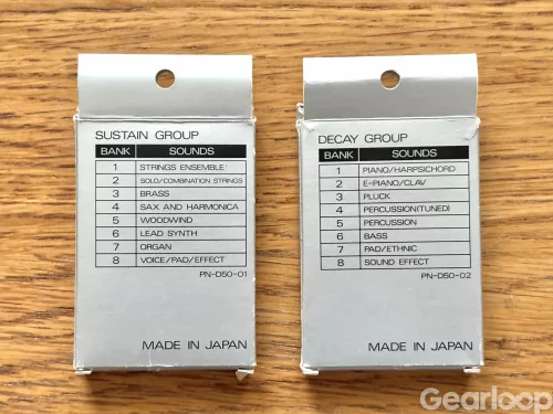 PN-D50-01 String Ensamble, Solo/Combination Strings, Brass, Sax & Harmonica, Woodwind, Lead Synth, Organ, Voice/Pad/Effect.