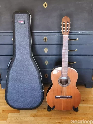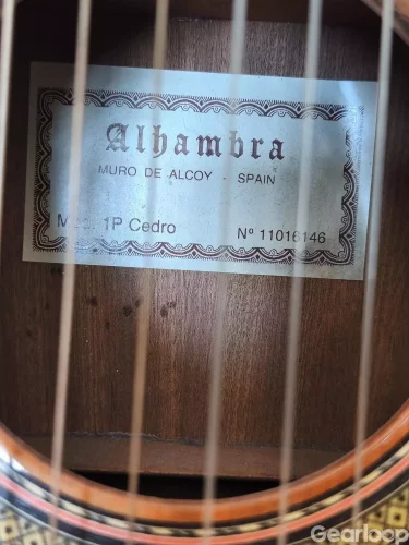 Alhambra 1p cedro i gott skick säljes. Jag är ende ägare av gitarren och köpte den i en musikaffär i Gävle ca 2001. Då gitarren har några år på nacken finns det en del dings och repor, det rör sig dock om små saker som knappt syns. Det som märks är att lacken har vitnat på vissa ställen. Den spelar bra och starkt, det enda jag märkte nu är jag fick en liten smula strängsurr på band 11 på tjocka E-strängen, borde vara lätt fixat om man vill. Den intonerar helt ok tycker jag, men går kanske att få ännu bättre om man byter sadelben. Just nu sitter det Aqulia Alchemia normal tension på, och dom har suttit där i sju år utan att gå av eller slitas nämnvärt, låter fortfarande bra! Banden är i bra skick iom att det är en nylonsträngad gitarr.