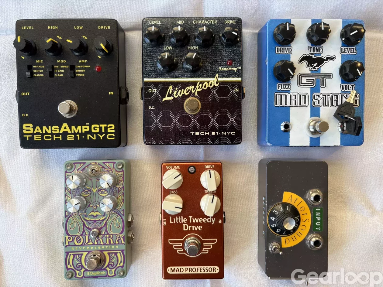 Klassisk amp-sim pedal. Marshall / Fender / Mesa-liknande ljud direkt till mixer eller interface.