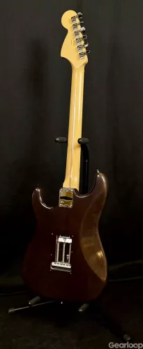 Mycket fint skick. Kroppen har några få mindre lackskador. Samtliga delar är original till instrumentet. Stallklackarna intrimmade för att matcha greppbrädans 9.5” radie. Stallet är justerat helt liggande mot kroppen, men fortfarande fullt svajbart framåt/nedåt.