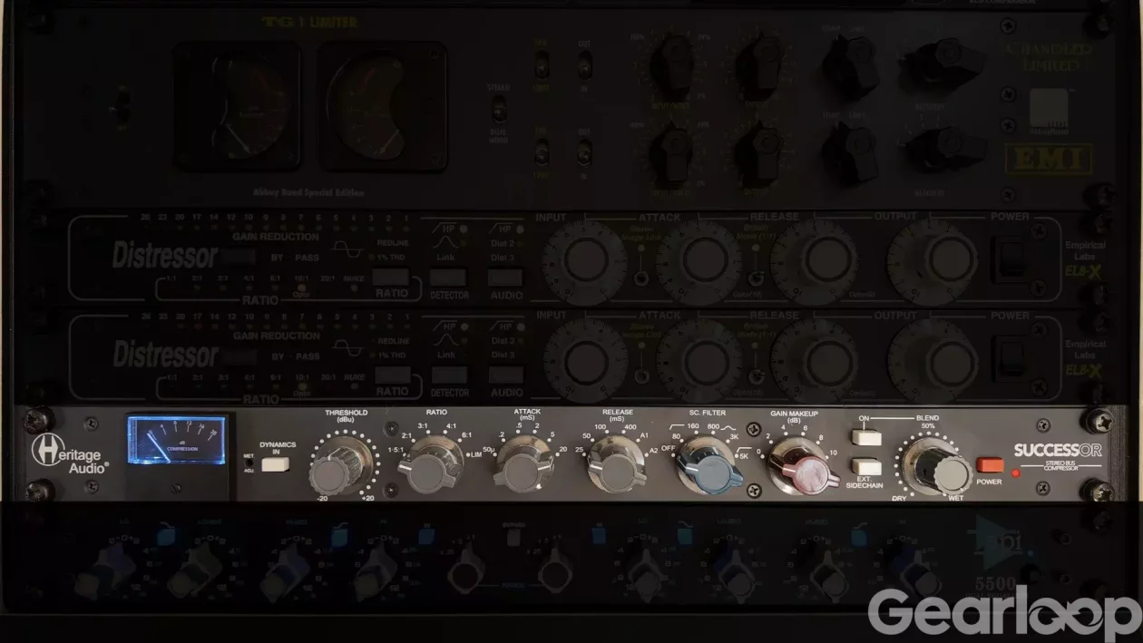 Successor stereo buskompressor från Heritage audio är en grym diodkompressor (samma typ av kompressor som Neve 33609). Denna låter grymt på trummor och mastern men kan självklart appliceras på såväl sång som piano och gitarr. Har sidechainfilter samt mixknob vilket gör den riktigt flexibel. Riktigt bra enhet!