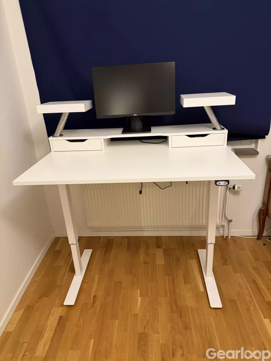 Detta är ett höj- och sänkbart studiobord som bygger på ett 120x80 Edsbyn Opus-skrivbord.