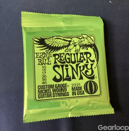 Säljer 1 set elgitarrsträngar, Ernie Ball Regular Slinky 10-46. Nya strängar i obruten förpackning. Skickas som vanligt brev efter avslutad affär.