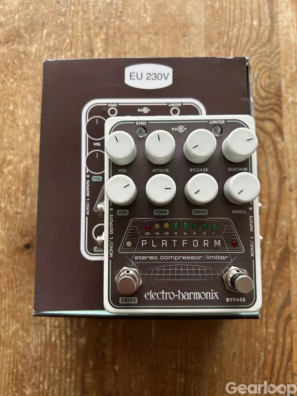 Electro-Harmonix Platform stereo kompressor/limiter pedal. Funkar riktigt bra för att mangla trummaskiner.
