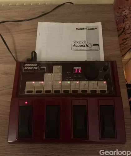 The DOD Acoustic 1 is a dedicated acoustic guitar preampand multi-effects processor designed to enhance and shape the tonal character of acoustic instruments. Housed in a durable red metal chassis, the Acoustic 1 integrates analog and digital circuitry to deliver preamplification, tone control, and a wide range of studio-quality effects tailored to the needs of acoustic performers. Its design accommodates both stage and studio use, combining a responsive analog front end with digital signal processing for modulation, delay, and reverb effects.