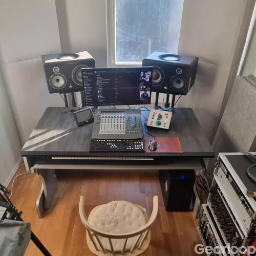Kommer med matchande monitorstativ, också från Zaor. (Inte de i första bilden, se länk nedan)