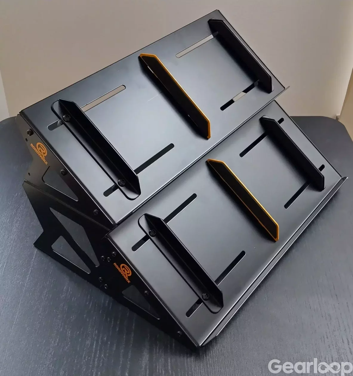 Roadworx dubbelstativ för syntar/trummaskiner, går att dela på.