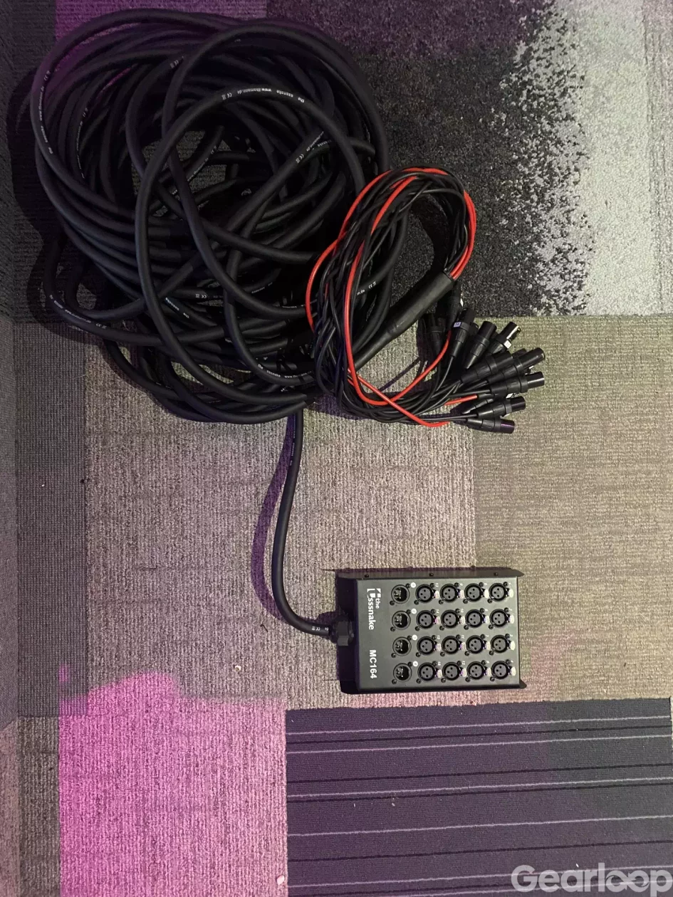 Gedigen stagebox ”the sssnake MC164” med 30m XLR. 16 inputs och 4 outputs. Har testat varenda en och alla funkar bra. Sparsamt använd och legat nedpackad mesta av tiden. Nypris är 2045kr, kan sälja för 1000kr.