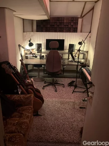 Focusrite Clarett 8PreX, Yamaha HS7:or, LaunchKey 49 Mk4, Keystation 61, WA87 och SM7B och många fler mickar, flera akustiska och elgitarrer, platsbyggda akustikpaneler