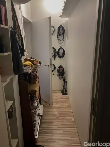 Ca 12 kvm (inkl. litet förråd/hall) på Hantverkargatan, mellan Rådhuset och Stadshuset. Kök och WC delas med sex andra studios. Finns allt för att bara plugga in dator, men även gitarrer, pedaler, mickar och annat kul. Nya monitorer och keys (ej på bild), se detaljer längst ned!