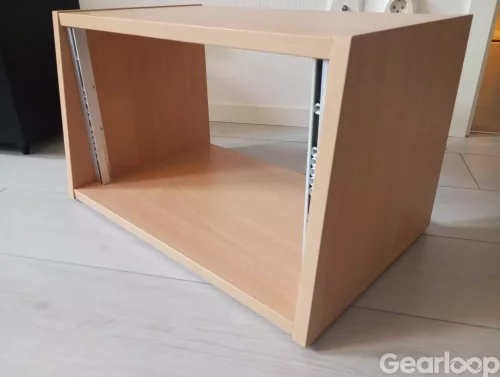 Thon studio rack 6u i beech/bokfinish. Vinklad framsida.