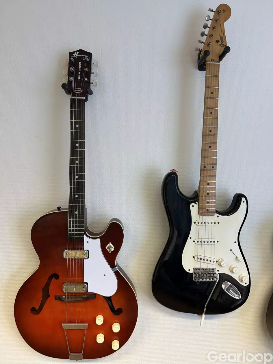 Fin Harmony H54 66 mek ,pg & case ej original + Greco 50´s strat copy med ss band (6105) m original bag