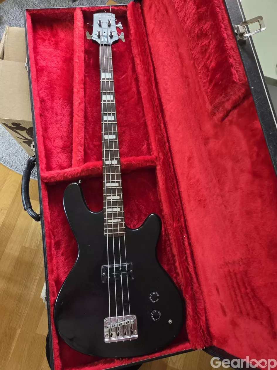 Mycket ovanlig bas från tidigt 80-tal. Närbesläktad med Jonas Hellborgs "Sound of Sweden"- bas som det finns lite mer info om på nätet. Denna skiljer sig framförallt i att den bara har en pickup och har tunnare hals som dessutom är fäst med skruvar.