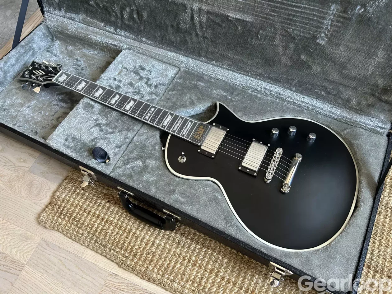 Eclipse byggd i Japan i så gott som nyskick. Matt svart finish med binding. Greppbräda i ebony med 22 rostfria stålband. Klassisk EMG-combo med 81 i stallposition och 60 i halsposition, batterilucka på baksidan. Hardcase ingår såklart, lite märken på det.