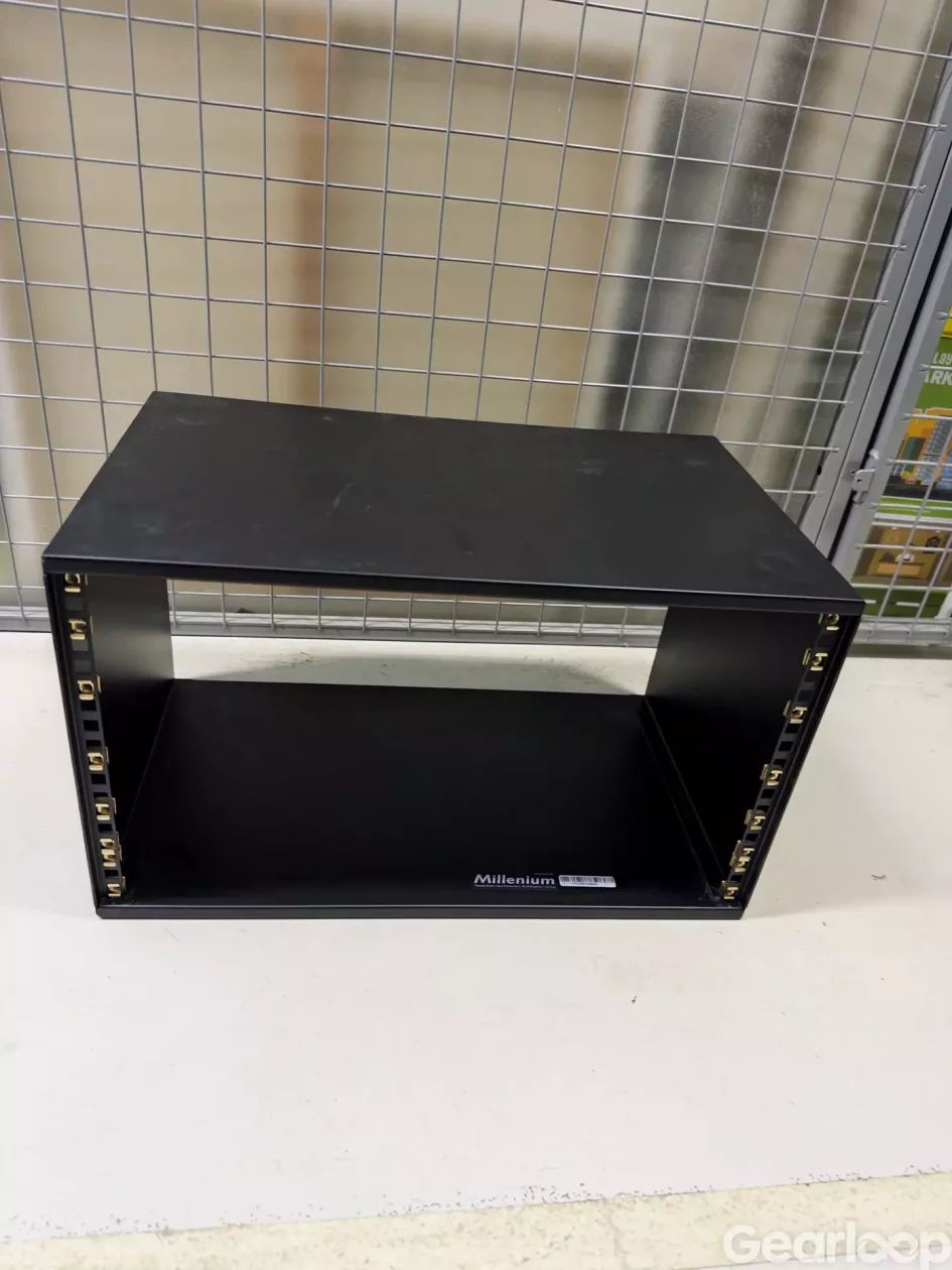 En enkel racklåda med plats för 6U. 16 rackmuttrar ingår.