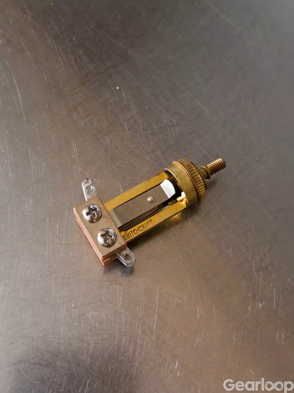 En guldfärgad lång switch till t.ex. Les Paul från ett projekt som inte blev av. Oanvänd.