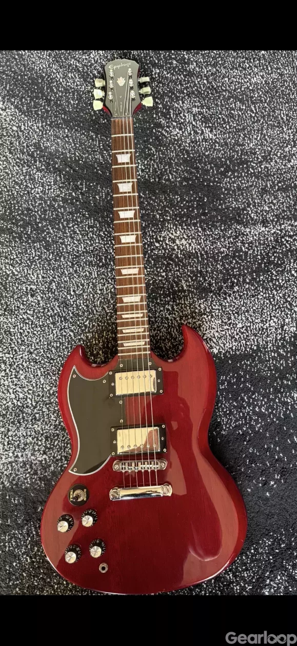 Säljer nu min Epiphone SG. Skall tydligen vara ett ex som byggdes i Samick fabriken på 90 talet.