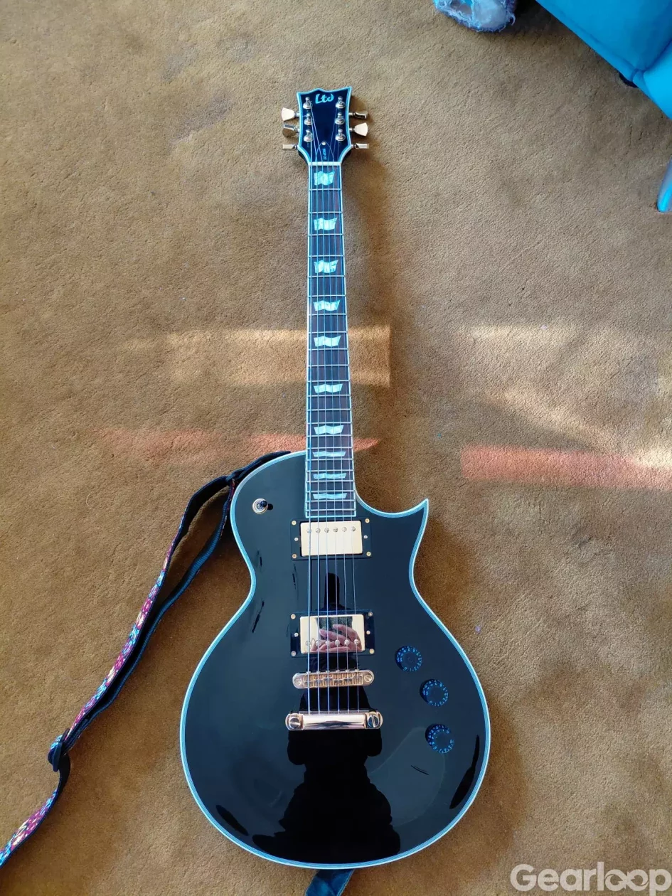 Grymt fin elgitarr i Les Paul stil, ESP LTD EC-256, säljes. Spelar fint, inga konstigheter, och i väldigt fint skick. För nuvarande satt i C#-standard, men med ett strängbyte så är man i den tuning man vill vara i. Mer info om gitarren med specs och dylikt finns här: www.thomann.se/esp_ltd_ec256_blk.htm (Nypris 5.7k)