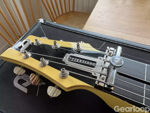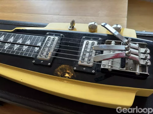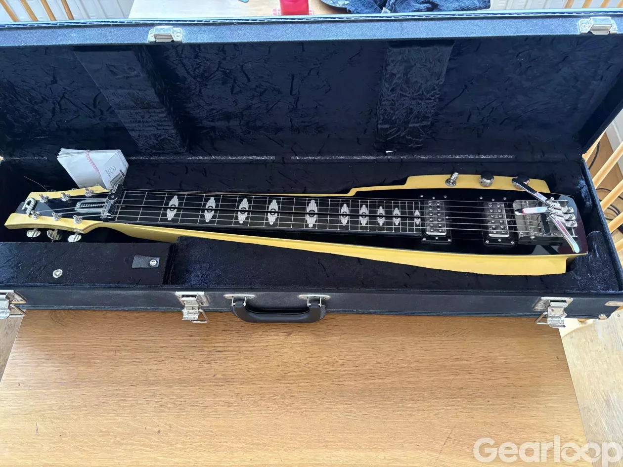 Mycket fin lapsteel. Jag har satt på en extra bender så tre av strängarna kan höjas eller sänkas som en pedalsteel. Pris kan ev diskuteras. Gitarren kan skickas väl förpackad i orginalcase. Några dings och kosmetiska skador finns (fler bilder kan mailas). Funktionsmässigt toppenskick.