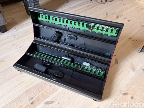 Racket är utformat för montering av eurorack-moduler och har inbyggd strömförsörjning med flera strömanslutningar på baksidan av monteringsytan. Konstruktionen består av ett vinklat chassi upptill med benstativ som ger lutad arbetsvinkel. Baksidan har bärhandtag för enklare förflyttning.