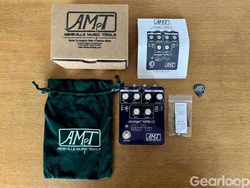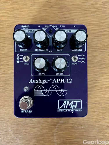 "The Analoger™ Series APH-12 is a 100% analog 12-stage phase shifter with deep functionality in a compact footprint. It delivers not only classic phaser tones, but many features and sounds not normally associated with traditional phasers. With a selectable number of all-pass stages from 1 to 12, and our signature control voltage processing, multiple flavors of modulation sit at your fingertips. The APH-12 delivers classic or extreme phase shifting, faux Leslie warble, vibrato and tremolo, vocal envelope followed filter funkiness, and striking multi-peak EQing. Designed by Hawker, this pedal continues the legacy of high stage count phasers and adds some surprises and special features to install Purple pHaze all in your brain."