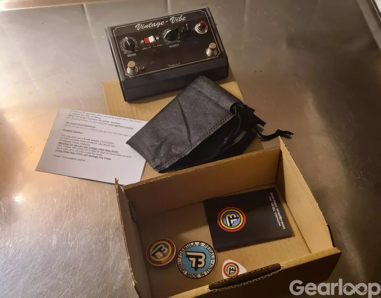 Har originallådan med alla grejer som hängde med, inklusive den lille påsen att förvara den i om man mot förmodan skulle ta bort den från pedalbordet.