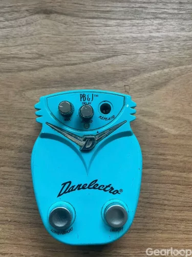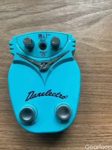 The Danelectro DJ-17 PB&J Delay is a highly regarded, budget-friendly digital delay pedal known for producing warm, analog-style tones. It features a unique, compact plastic design with two footswitches to toggle between long/short delay times and effect bypass. It is praised for its versatility, offering everything from slapback to 1-second delays.