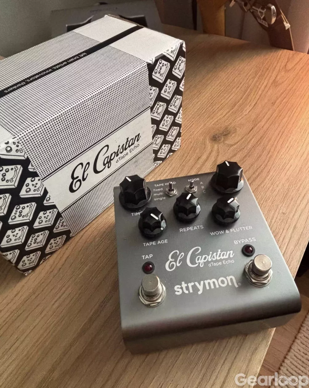 Strymon El Capistan gitarrpedal med bandeko-inspirerat delay. Pedalen har reglage för bland annat tape age, repeats, wow & flutter, mix och time, samt tap-tempo-funktion. Lämplig för elgitarr och andra elinstrument som behöver delayeffekt. Levereras med originalkartong enligt bild.