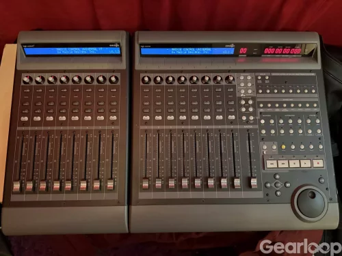 Det står logic control på dim men har bytt chip till samma som sitter i Mackie Control Universal . Den funkar med all DAW som kan använda MCU. Allt funkar. Har inte kartongerna kvar så den skickas ej, utan hämtas på plats. Huvudenheten 1800kr och XT 1000 kr . Eller 2500 för bägge