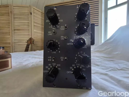 The AML ez1073-500 mic pre / EQ module for the popular 500 Series format is a direct descendant of one of the most iconic console modules ever produced. Featuring Class-A discrete circuitry with Carnhill transformers and inductors, the ez1073-500 nails the sound of a highly sought-after input module with separate mic and line inputs. Get enormous, fat sounding tracks right out of the gate with this mic pre and then shape your sound as needed with a switchable high-pass filter and flexible 3-band EQ.