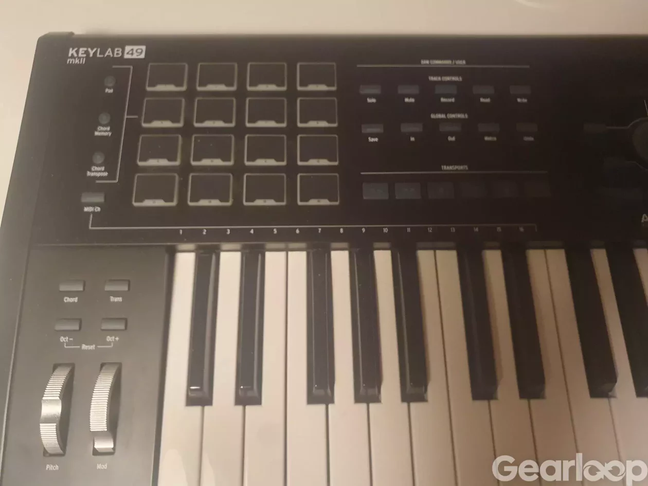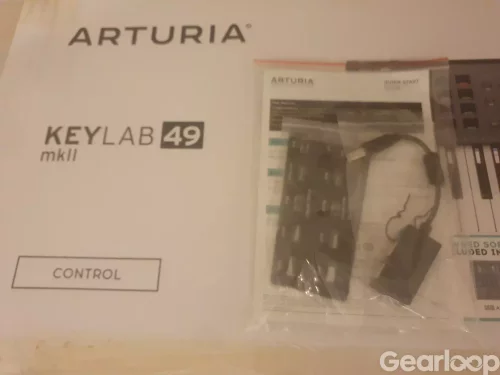 Version två av Arturias premium-MIDI-kontroller (ej att förväxla med budgetkontrollern "KeyLab Essential", som har betydligt sämre klaviatur). MK3 har vissa uppdateringar men samma klaviatur, och MK2 säljs fortfarande ny i butik för runt 4 000 kr. Är i nyskick med originalkartong och alla tillbehör (men märk att den strömges via USB-kabel: traditionell elkabel säljs av Arturia som extratillbehör).