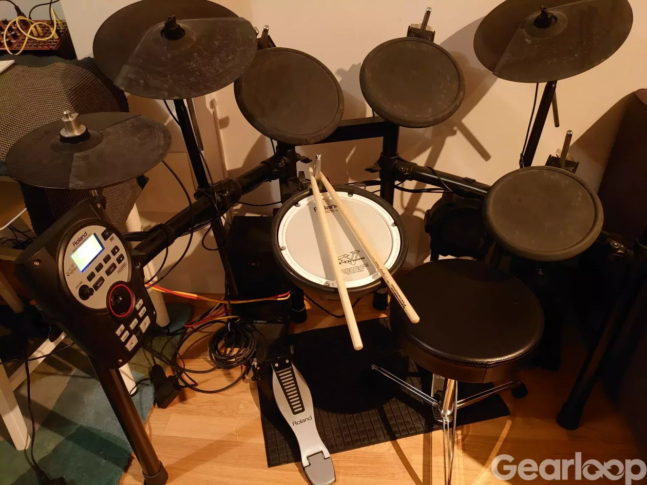 Fint digitalt trumset för rep och övning (inkl pall och stockar).